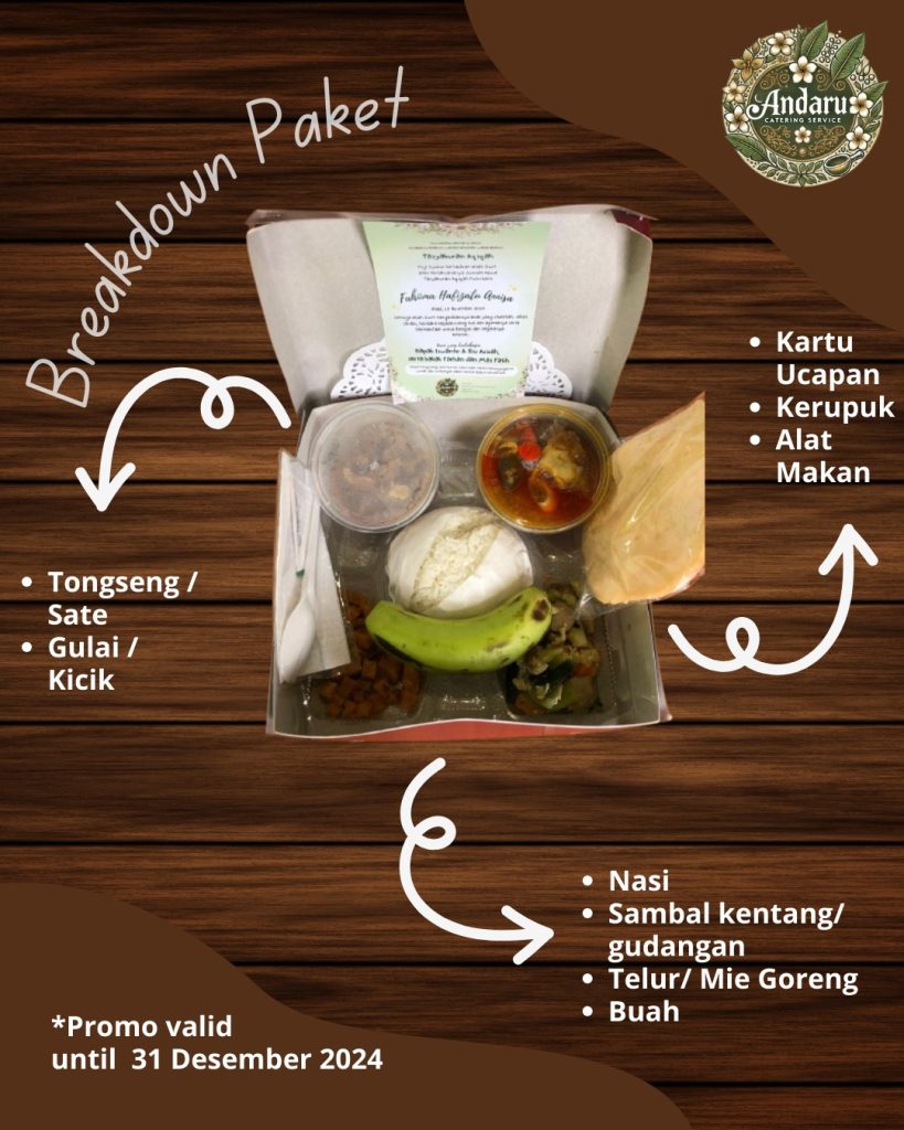 Andaru Catering adalah penyedia layanan catering yang berkomitmen untuk memenuhi segala kebutuhan kuliner Anda. Dengan pengalaman yang luas, kami menyajikan ragam pilihan menu yang lezat dan berkualitas. Mulai dari acara pribadi hingga acara korporat, Andaru Catering siap memberikan pengalaman kuliner tak terlupakan. Keunggulan kami terletak pada rasa istimewa dan pelayanan profesional.